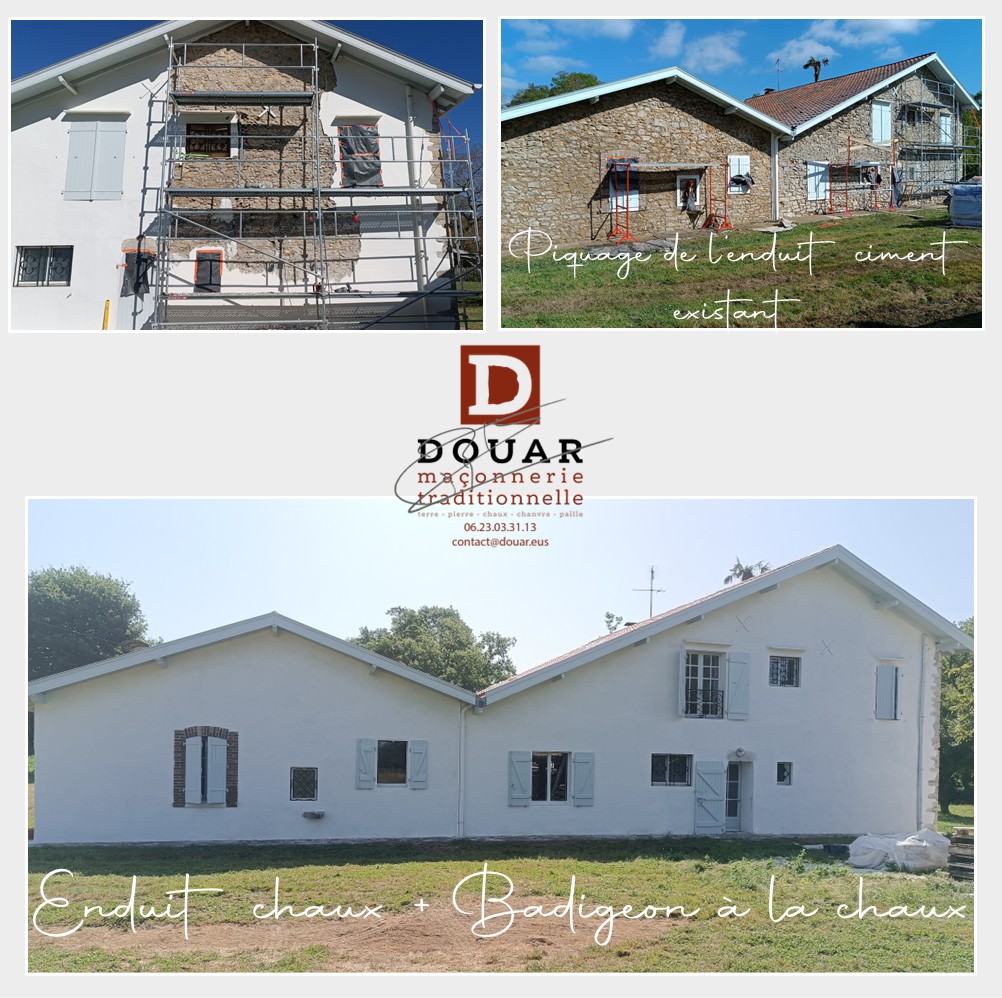 Enduit traditionnel à la chaux avec badigeon