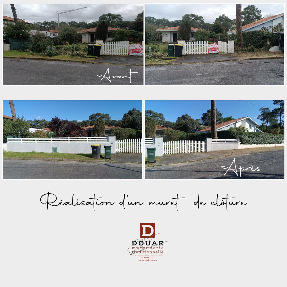Muret de clôture béton avec enduit ciment à peindre