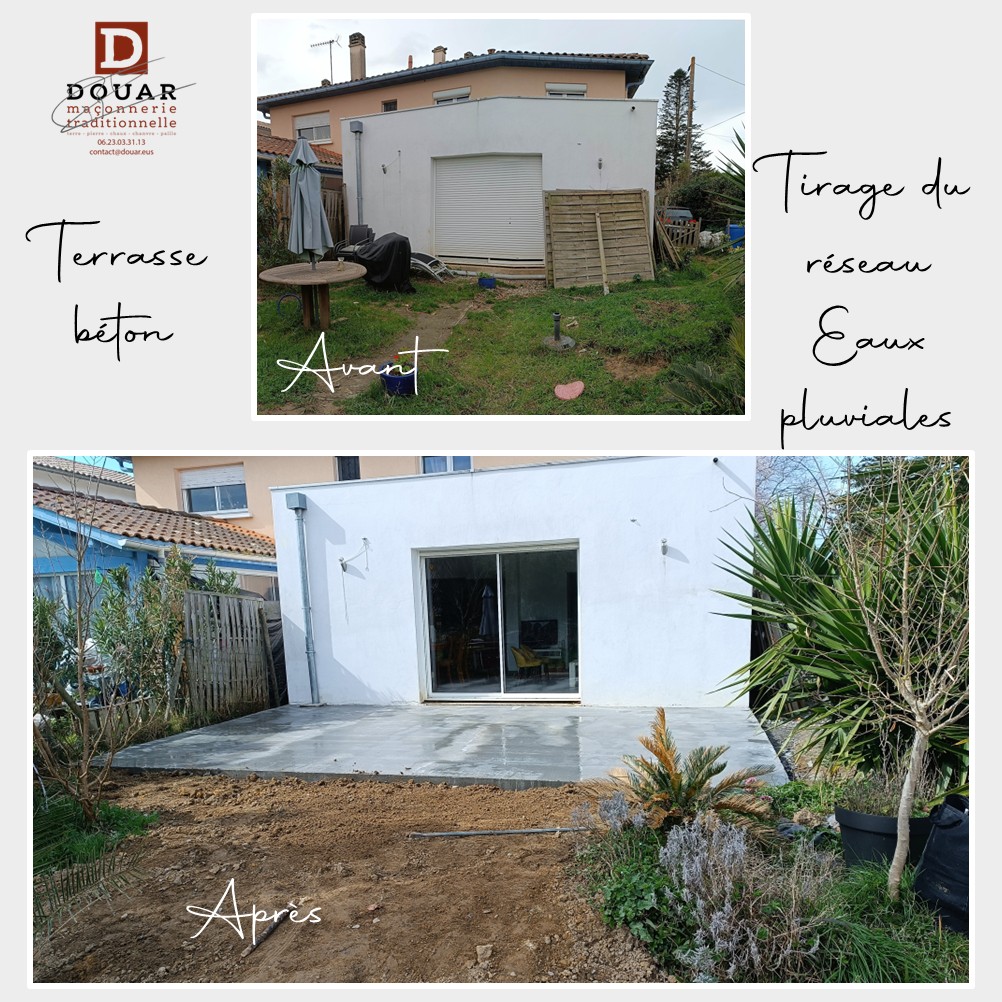 Réalisation d’une terrasse béton et tirage réseaux